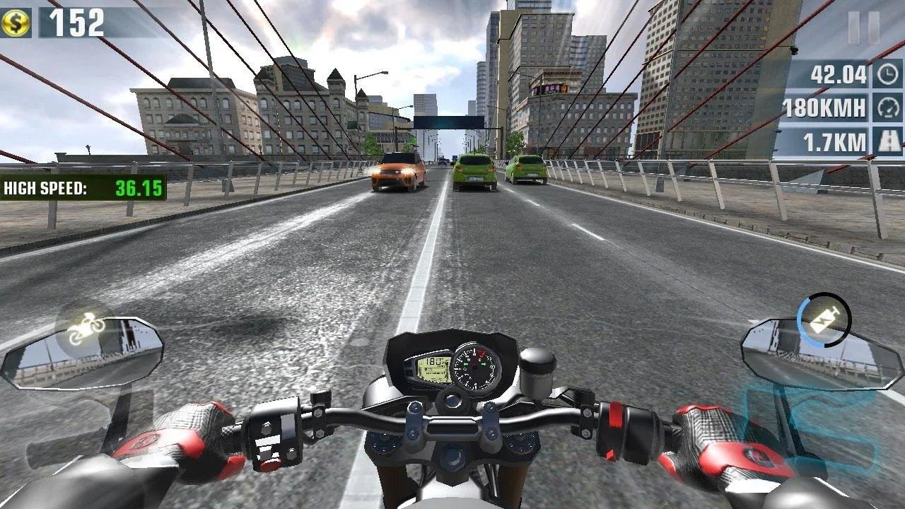 极速摩托短跑是一款摩托车驾驶模拟竞速游戏,游戏有着非常先进的3D引擎,玩起来非常的流畅,而且给玩家破解成了大量的货币,您可以驾驶着摩托车在道路上飞速前进,但是要注意交通规则,避免撞到其它的车子,以免您的车子撞毁;