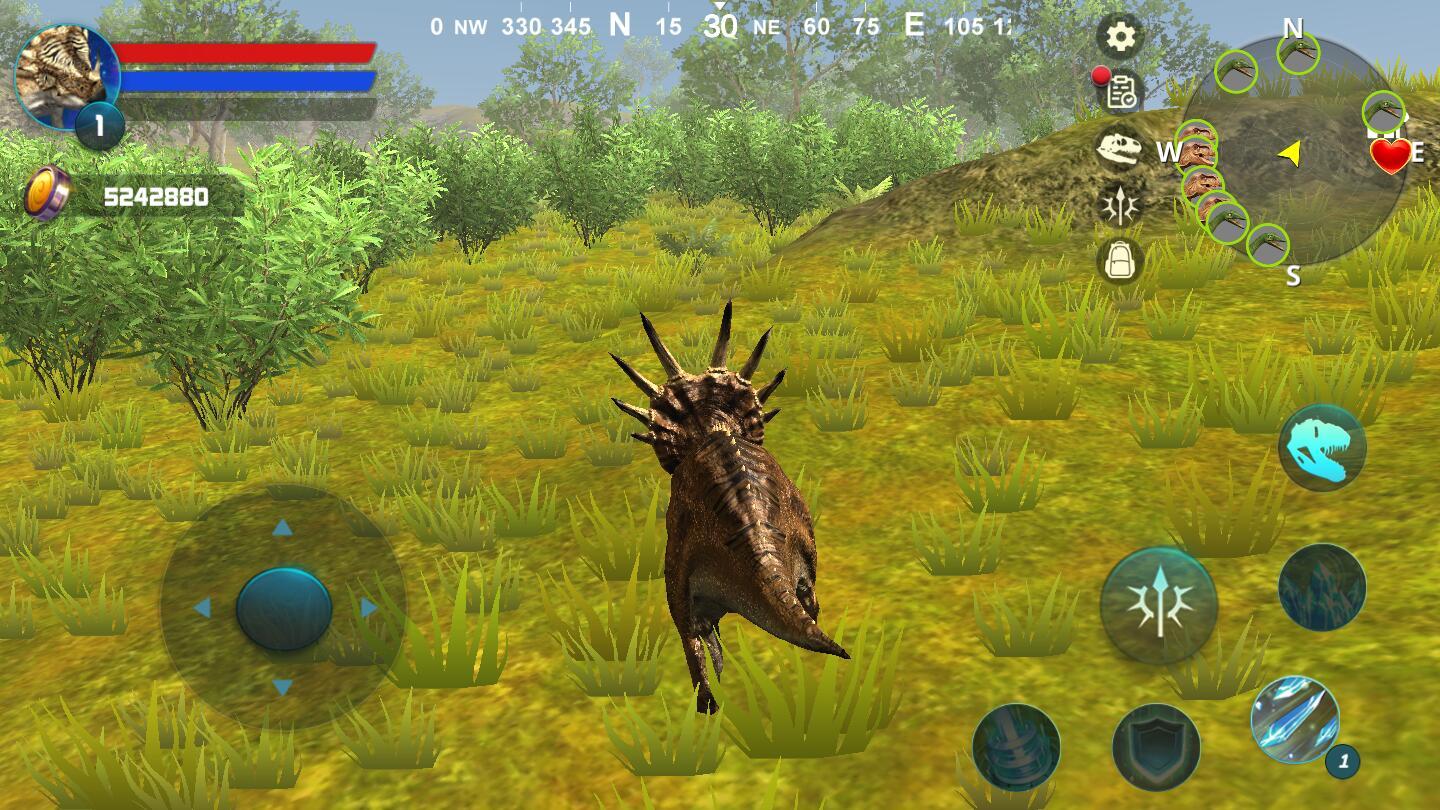 刺盾角龙模拟器游戏给玩家破解成大量的金币,这是一款模拟恐龙的生存冒险游戏,您将进入到原始森林中扮演一只恐龙,捕食其它的动物生存下去,躲避危险,让自己变得更加的强大,开阔的地图供您自由探索;