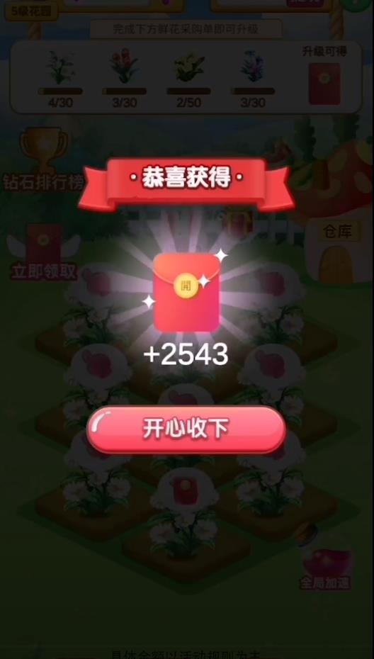 解锁更多的花来打造完美农场,玩法任务可以获得红包奖励,自由进行提出。