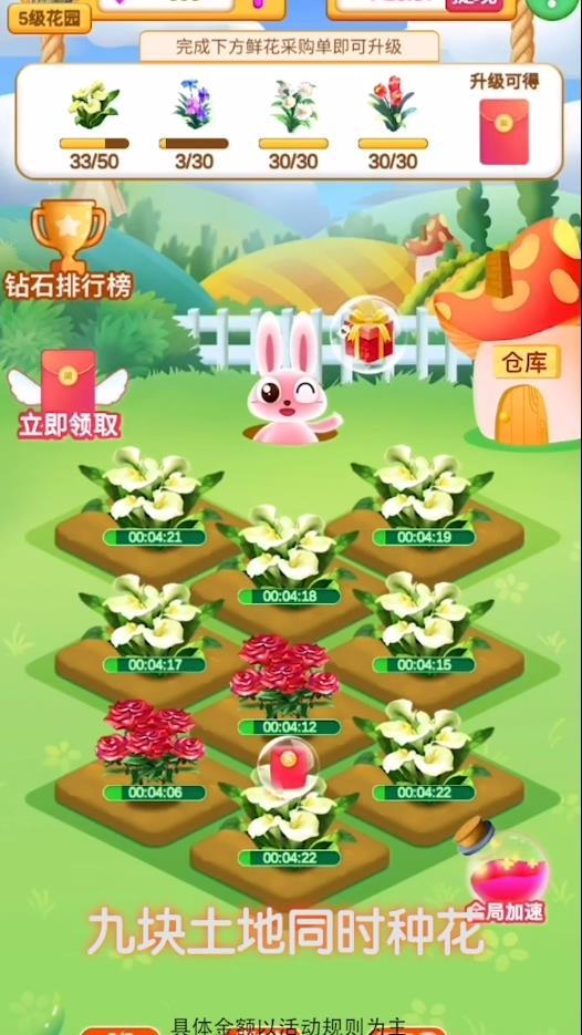 玩家在游戏中需要经营好自己的花园,给你的花儿浇水施肥,操作简单易上手,还可以赚红包。