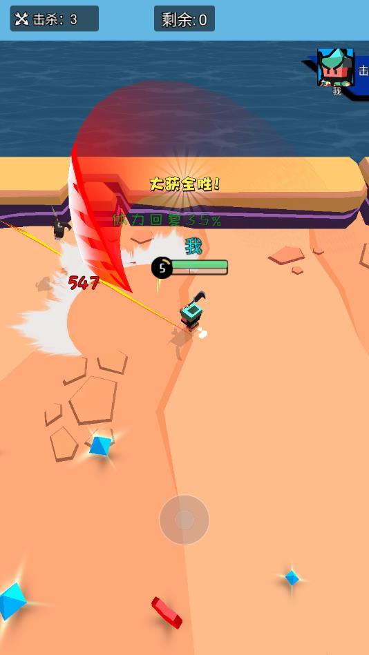 和吃鸡一样的毒圈不断在缩小,你需要尽可能的去不断找到更加厉害的武器消灭其他的所有敌人;