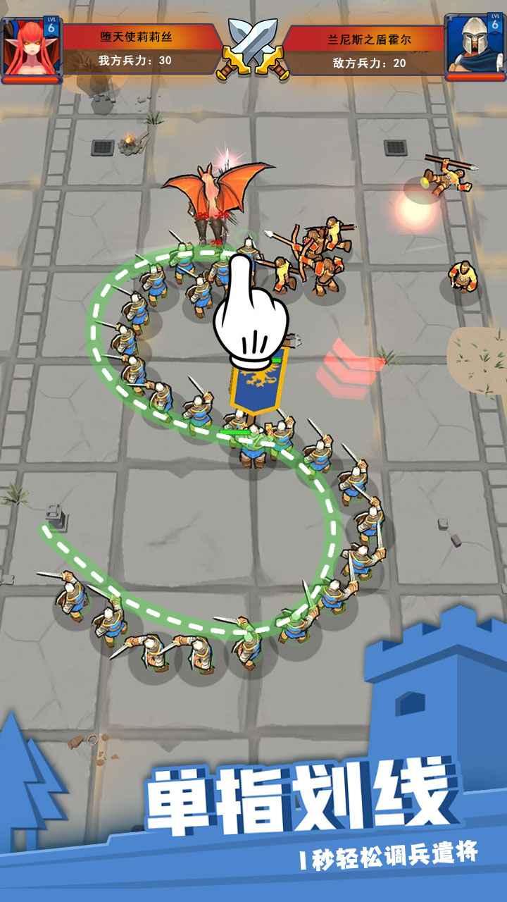 单指滑动操作,纯手绘画出任意阵型,1秒轻松调兵遣将,3秒一波攻打敌军。