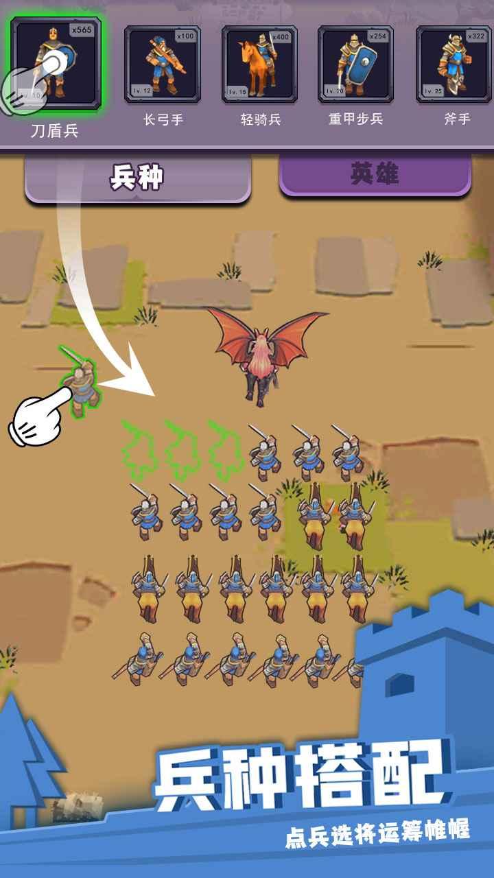 步兵、弓兵、骑兵、斧手等多种兵种组合,不同阵容巧妙搭配,运筹帷幄才是胜者姿态!