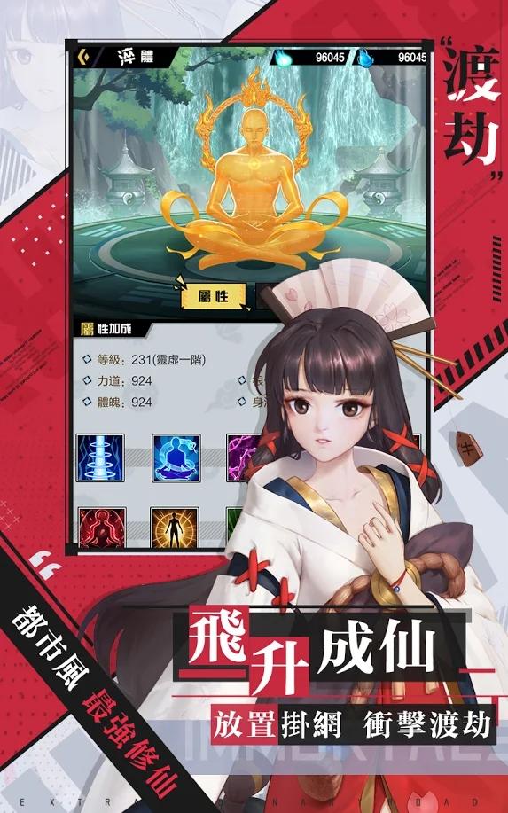 放置挂网,资源材料经验轻松获取;游戏离线亦有多多修为收益,轻松挂机悟天道,渡劫修真羽化仙!