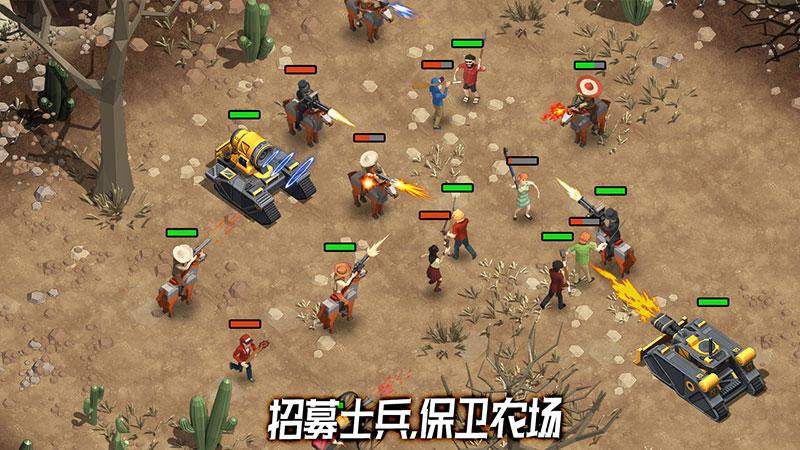 在这个遍地都是感染者的情况下,做一个悠闲的农场主,建造大量的帐篷和农田,招募大量的幸存者来保卫农场,自由的摆放,打造属于你们独一无二的基地,消灭所有的感染者,夺回人类的家园,新颖的联机玩法,同好友互换资源,也可以抢夺资源。
