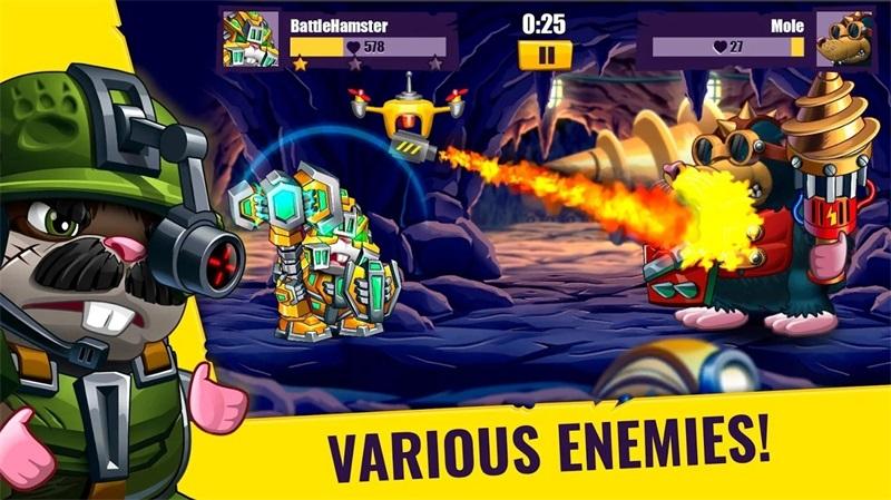 2、自由进行多种趣味战斗,提升自己的作战等级解锁更多的武器,增加仓鼠的伤害值。