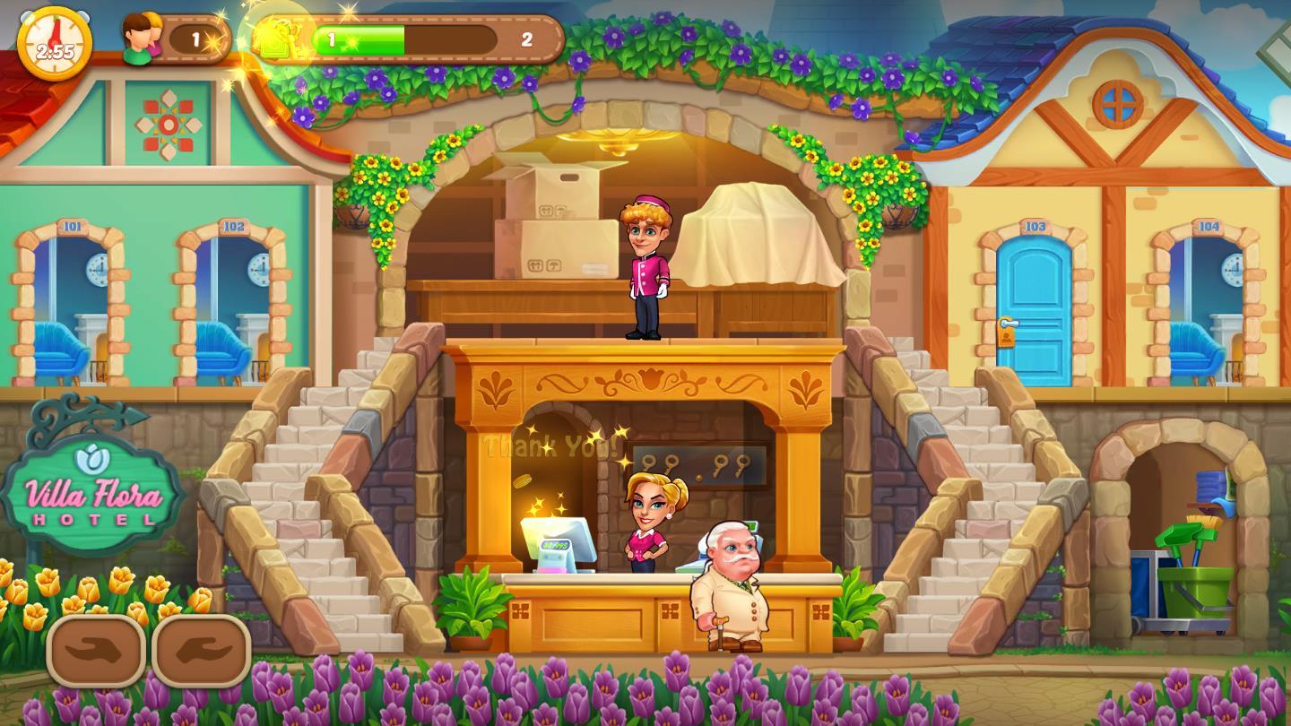 为顾客提供多样的服务,以提高顾客的满意度,收获更多的金币奖励,进行酒店设施的不断升级,玩法是非常休闲有趣的。