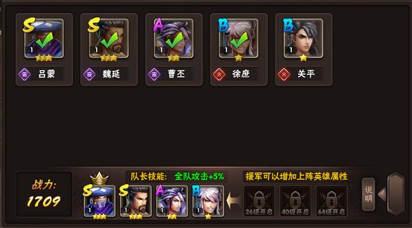 1.在26、40、64、67级的时候分别会解锁一个援军位。在布阵界面玩家可以添加武将作为援军,上阵援军之后,参战武将的属性将会大幅度提升。如果玩家可以在服务器中率先抵达这些结点等级,战力将会远高于其他玩家。