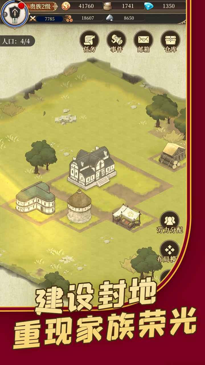 建设封地,再现家族荣光。绝大多数资源产出都源自封地的建设,因此打理自己的庄园也是很重要的一环。族长需要不断提升爵位,扩张封地,建设家园,吸引更多的流亡族人回归,在打理封地的过程中享受经营的乐趣;