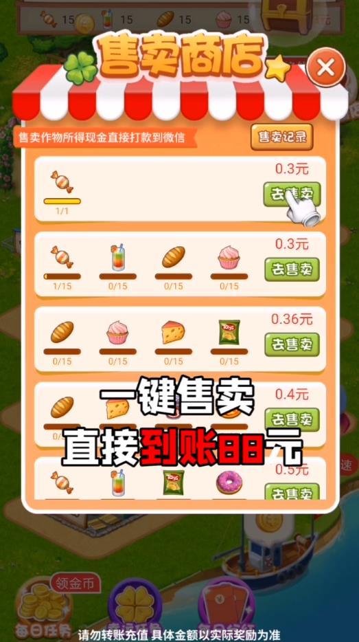 疯狂小镇中有着你的专属农场,实现你梦想中优质的田园生活,玩法是非常休闲的,轻松就可以进行放置操作,依靠不断经营的方式,让你的农场资源越来越丰富,从而获得更多的资金,进行农场的不断经营,就可以赚取更多的红包奖励。