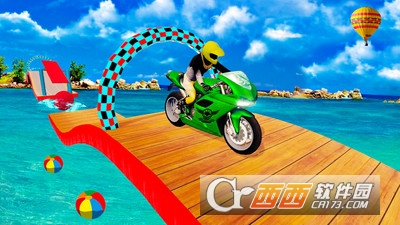 摩托特技驾驶大赛是一款特技摩托车赛事游戏,你可以在海洋上,空中进行相关的赛道奔驰,游戏的画面与玩法很有想象力,给人以天马行空的感觉。