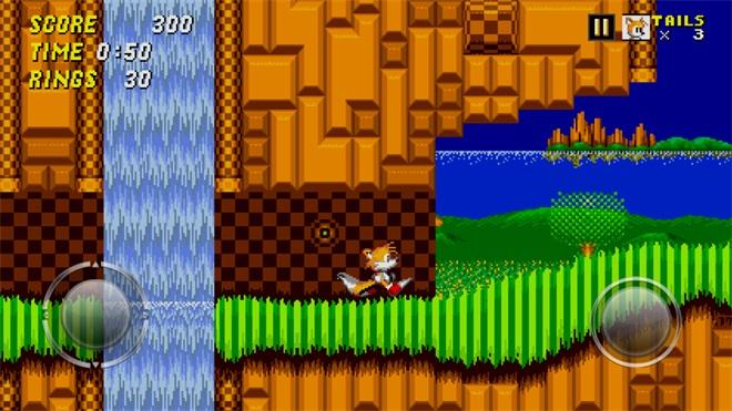 沿袭了经典的索尼克造型,一路飞奔,收集金环,躲避障碍等。