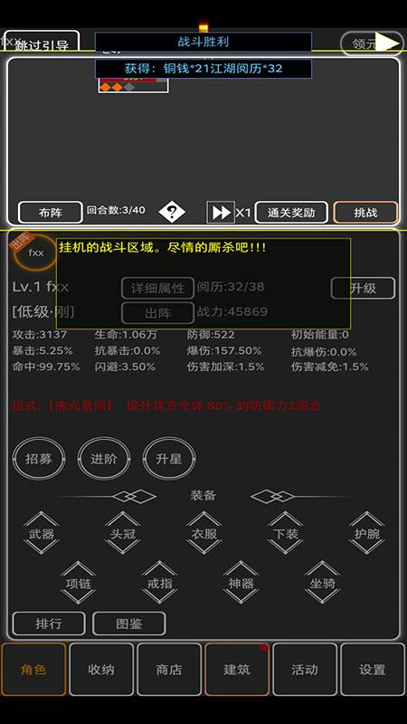 4、强大的实力建立在勤奋的练功,招募的伙伴及机缘上。权衡取舍资源提升自己吧。