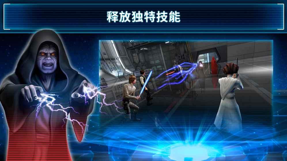 制定明智战术决策,为英雄配备最佳装备,增强他们在银河战争中的伤害力。 解锁特殊首领技能、释放强力招数,如帕尔帕丁皇帝的原力闪电、丘巴卡的伍基之怒等等,让您的小队势不可挡。