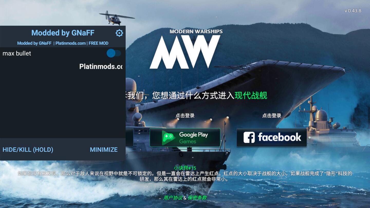 现代战舰手游破解版2021内置作弊菜单,提供子弹不减的功能,这是一款非常刺激的竞技手游,游戏以海战为题材,拥有超高的自由度,在这里你需要组建自己的军队提高战力,驾驶自己的战舰来取得胜利。