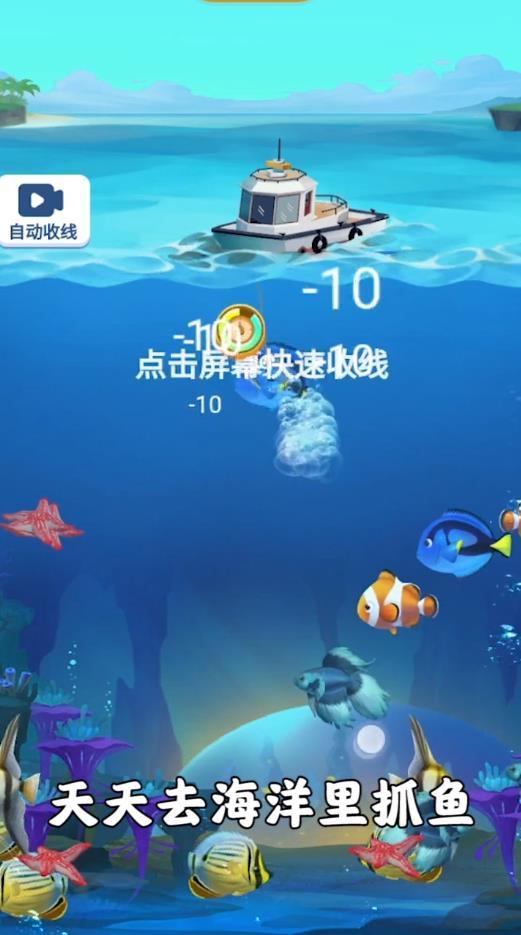 你还可以去不同的海域中捞鱼,游戏中的操作还是比较容易的,卡通的游戏界面给你不一样的游戏体验。
