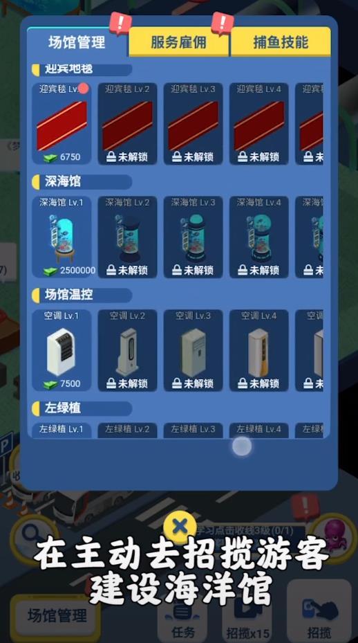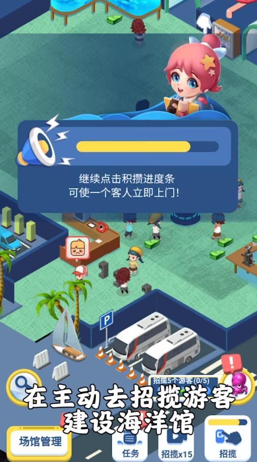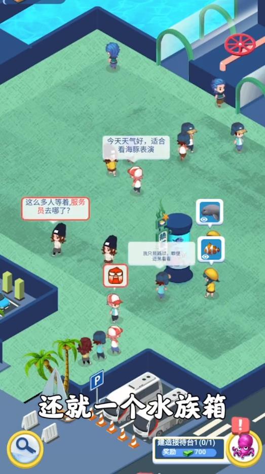 轻松经营海洋馆,除了布置鱼群的新家,还需要招揽游客,提高海洋馆名气。
