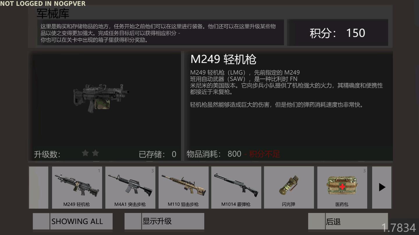 游戏的关卡是以过关的形式解锁的,需要完成前面的任务才能解锁更多的关卡,完成每个任务后会有分数,这些分数可以用来购买一些枪支和补给用品。