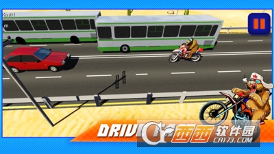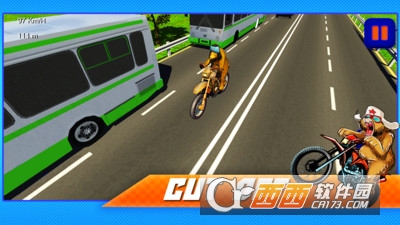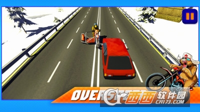 俄罗斯熊赛车是一款最新的摩托赛车游戏,这只萌熊可以骑着摩托在马路上奔行,你需要通过前面的车辆,实现超车,躲避障碍物。