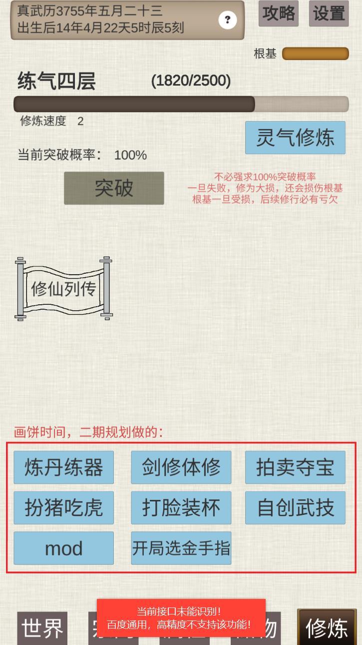 修仙历练类的游戏,进行各种渡劫闯荡收集更多需要的资源宝物,提升你各方面的能力属性,完成各种精彩的作战冒险;