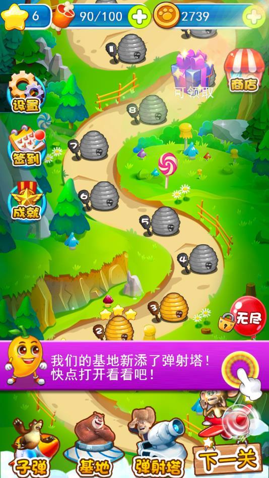 熊出没之极限弹射是一款充满熊出没元素的射击游戏,多样的玩法模式,不断进行更多水果子弹的解锁,不同的水果子弹有着不同的威力,支持进行弹射塔的升级操作,让己方的攻击力增强,非常丰富的关卡,等你不断的挑战。