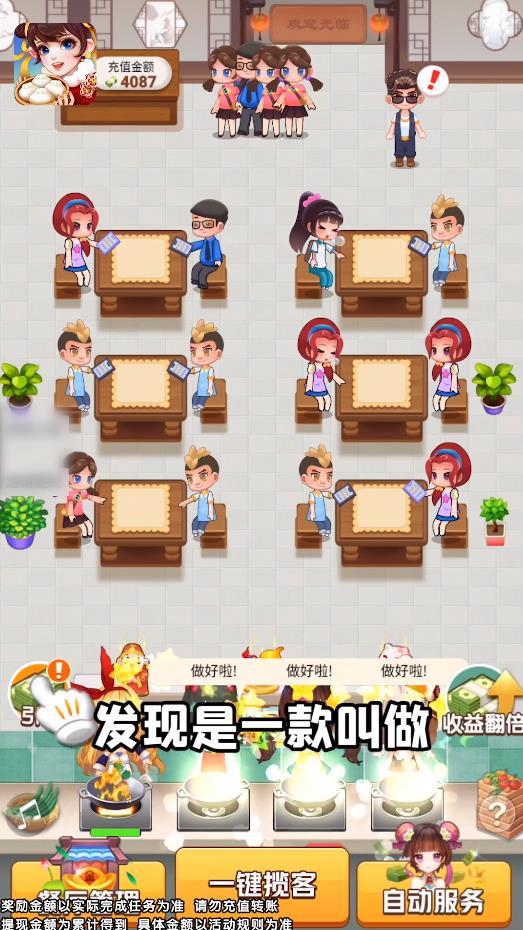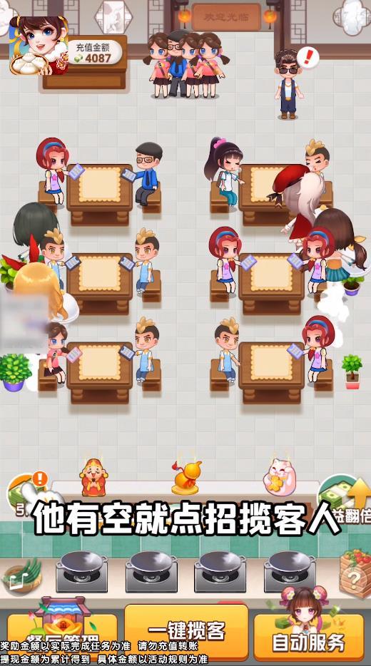 你可以通过开办饭馆的方式来获取丰厚的红包奖励,获得更好的游戏体验的同时,领取诱人的红包奖励。