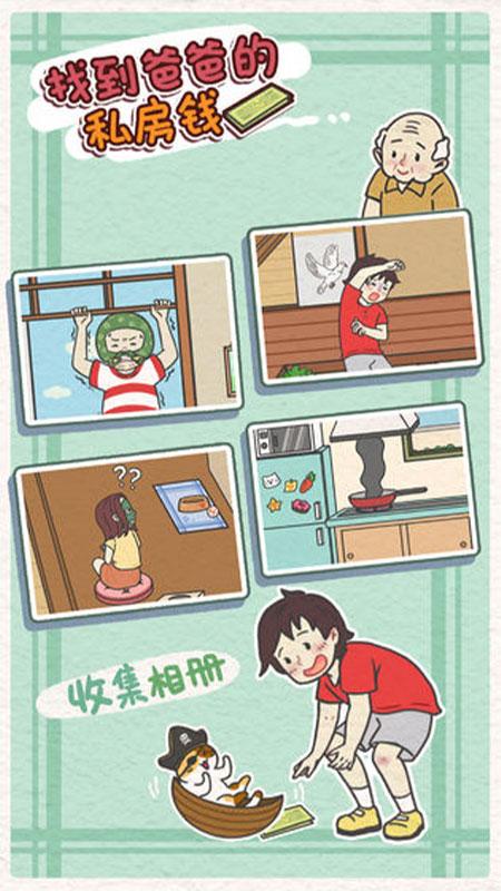 1、这是一款画风魔性的解谜类游戏,你要瞒着自己的爸爸找出私房钱;