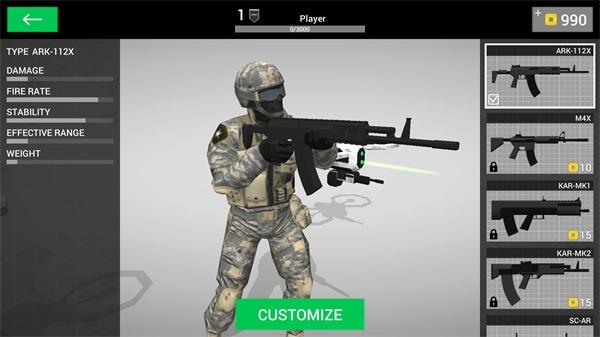 2、枪战武器选择种类丰富,自由化的全方位生存模式呈现,是时候秀出自己的射击技巧了;