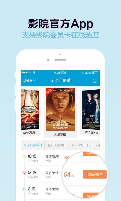 2、太平洋旗下影院排期实时查询,随时随地购票;