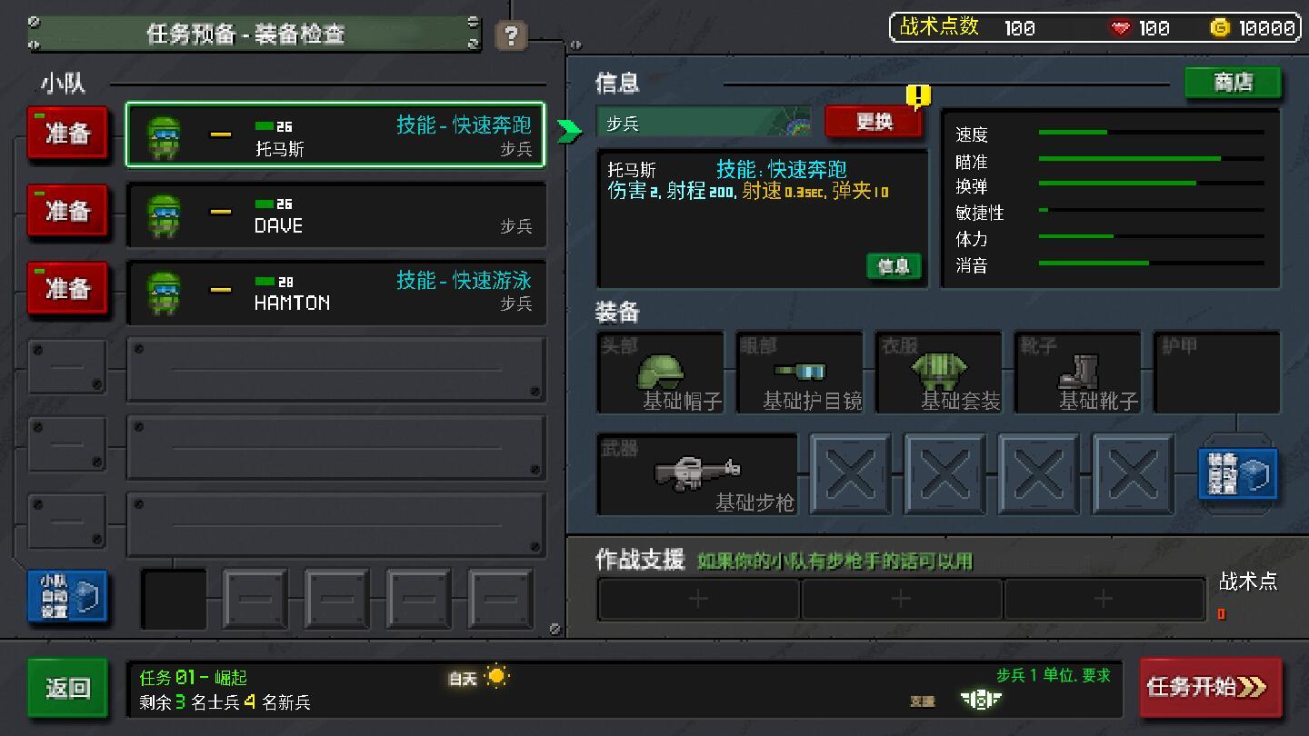 为每个类别使用各种武器,武器和设备,升级您的基础设施并提高士兵的能力;