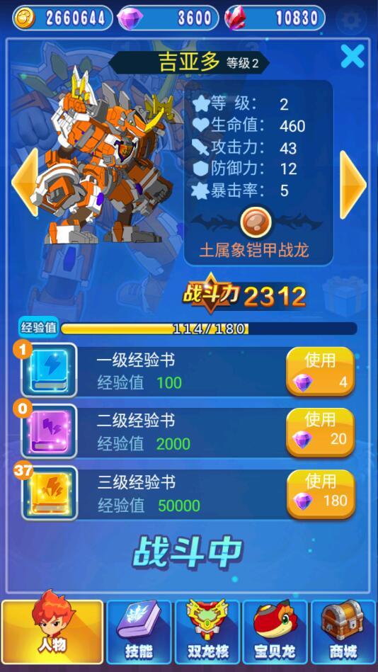 解锁后的角色,要通过升级本身和升级技能还有通过双龙核来强化,达到快速通关的目的;