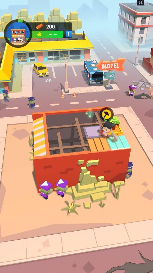 IdleZombie是一款将末日、建造、放置等多样元素融合在一起的休闲游戏,在这里自由进行基地的建造,你需要以靠击杀丧尸的方式进行材料的获取,进行多样建筑的不断建造,才能够让你的幸存者基地不断完善,点击即可进行建造。