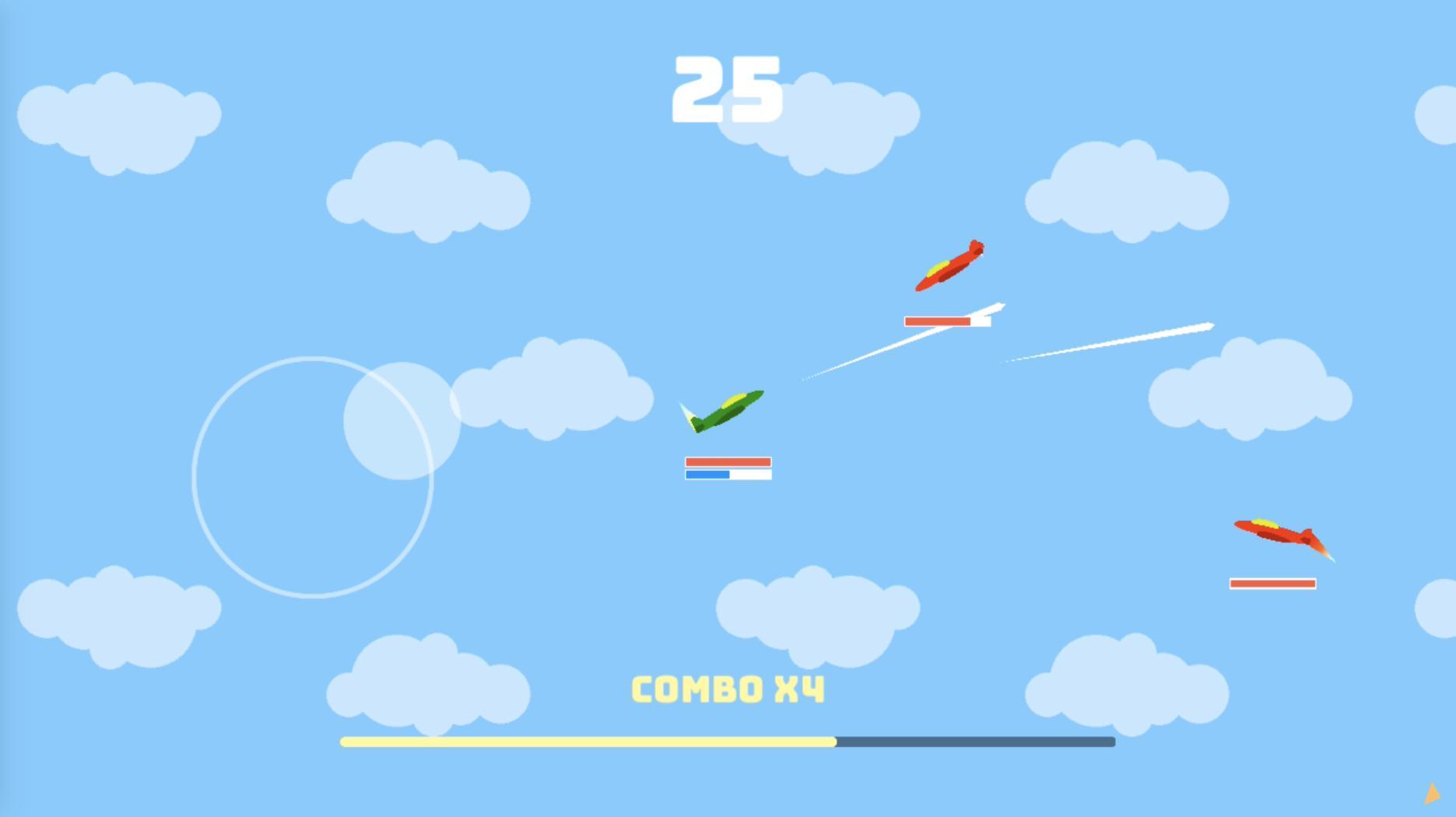 超级热翼是一款趣味十足的飞行射击小游戏,游戏的画面很是简约,玩法也很有趣。玩家在游戏中需要控制自己的飞行进行空战,需要小心的躲避敌人的攻击并摧毁敌方的飞机。不仅如此,玩家松手时游戏就会进入慢动作,让玩家可以轻松躲避飞快的子弹,玩法很是新颖有趣,你能成功存活吗?