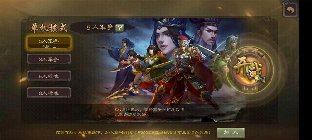 三国杀单机版是解锁了全部的武将,你将能够享受到各种武将给你带来的快乐,再也不需要花钱去买或者是肝了,游戏的玩法还是相当的经典的,玩起来非常的过瘾,多种模式能给你带来多种不同的战斗体验,每次的战斗你都能够感受到这款游戏的乐趣,现在就来下载吧。