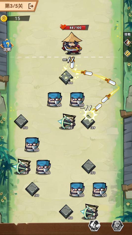 少侠好刀法让你感受不一样精彩的武侠玩法,多样的关卡多样地图,等你来不断进行冒险,每一关的敌人布局以及敌人都是不同的,你需要合理进行攻击路线的规划,才能够更好的进行敌人的消灭,每次闯关成功,就可以自由进行新技能的选择。