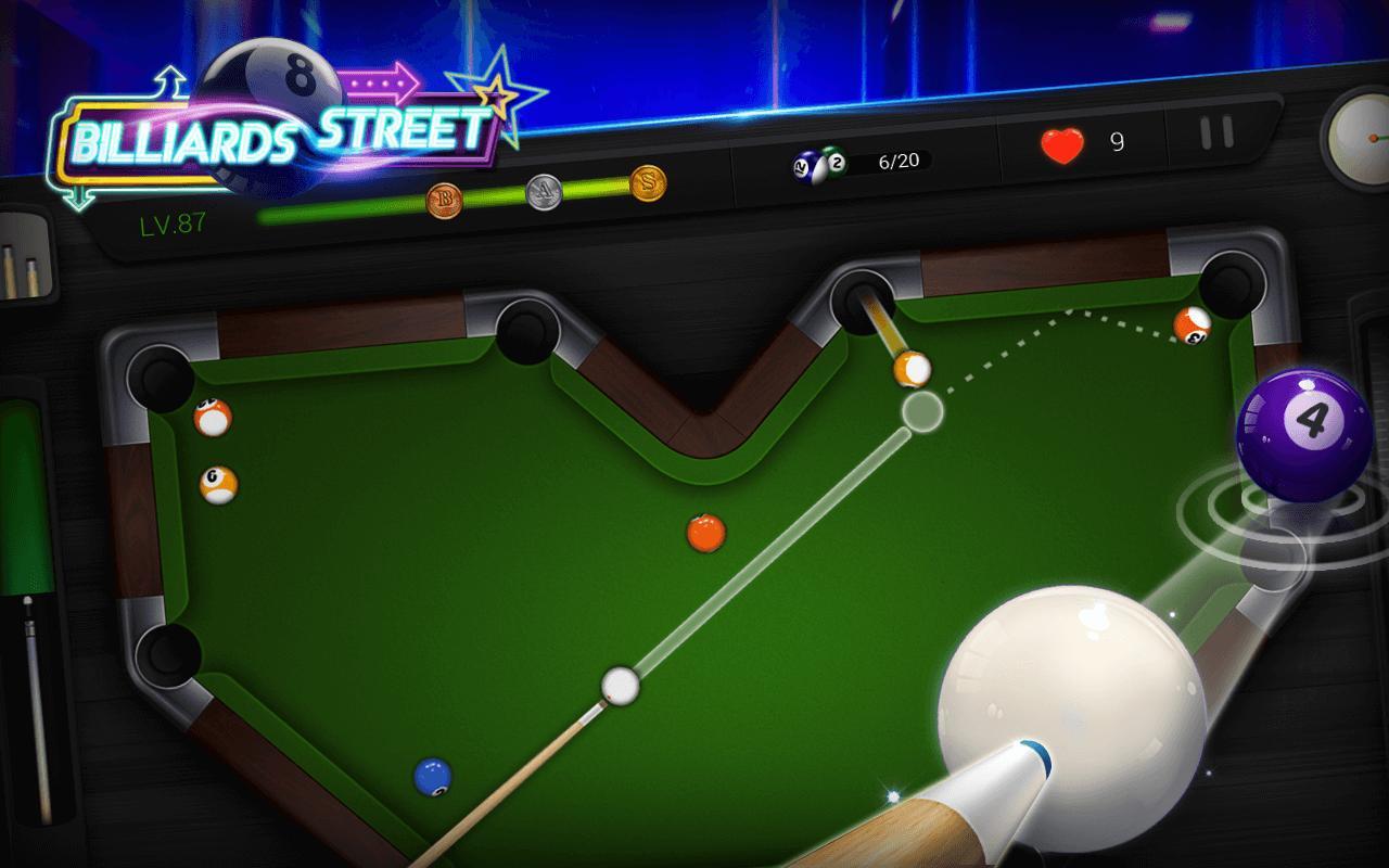 3、提升等级可以解锁更有挑战难度的关卡,考验玩家的台球技术乐趣十足。
