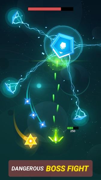 3、在必要的时候也可以使用道具升级自己的宇宙飞船,发射出不同的子弹。