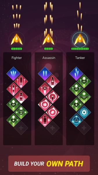 选择您喜欢的子弹图案,并在游戏期间进行构建。超过50种不同的技能可添加到您的飞船中,使您能够自定义战略战役