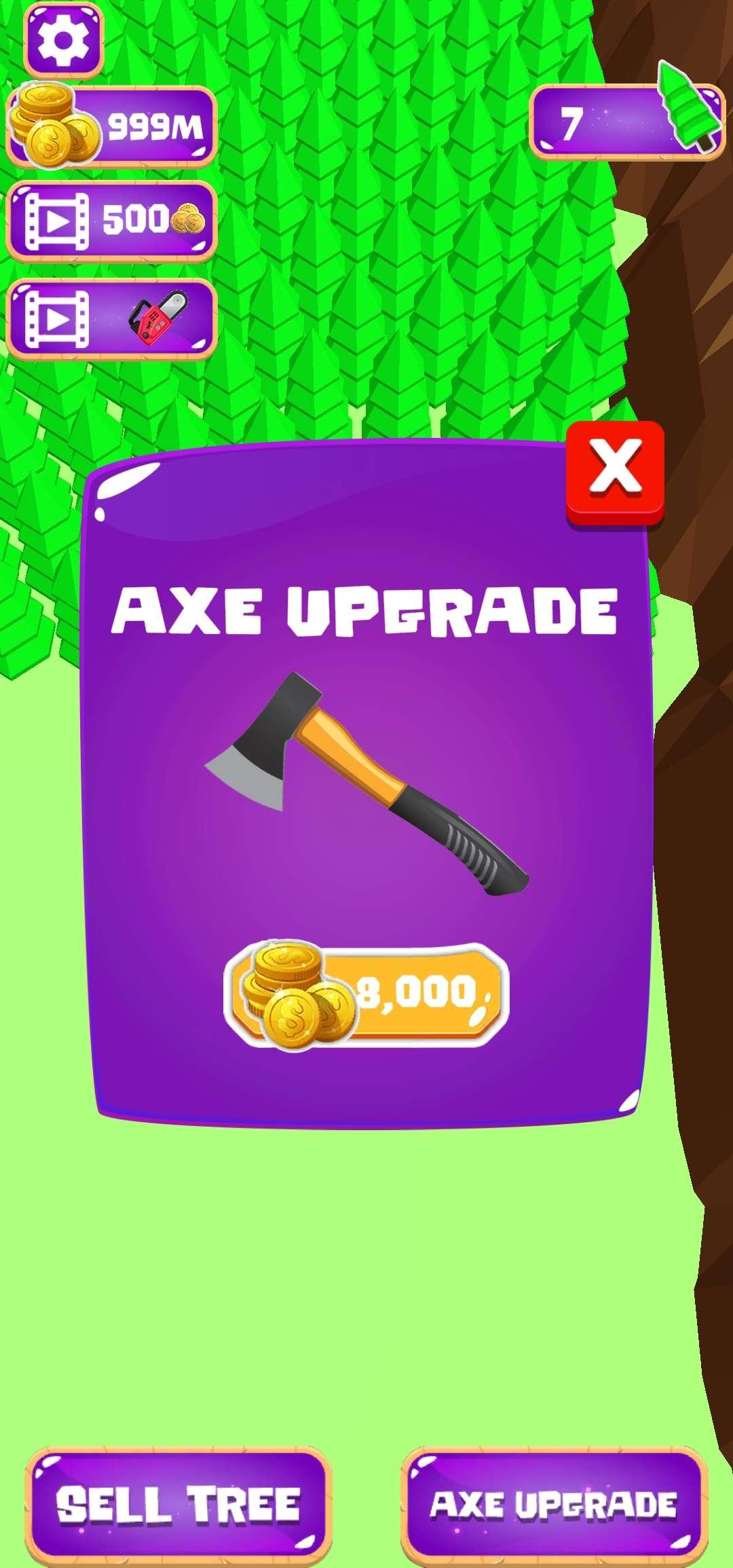 简单明了的概念:砍树,收集硬币,磨斧头,砍更多的树
