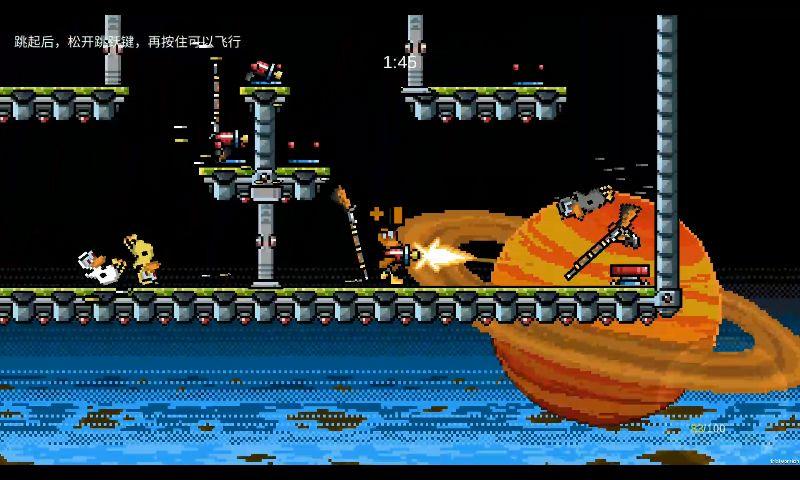 2、玩了一会儿后终于搞明白了,这个游戏每把有四个人,在不同的关卡中大混战,最后或者的那个鸭子就是胜利者。最后根据所有关卡累计的分数进行排名,这个时候就知道孰强孰弱了。