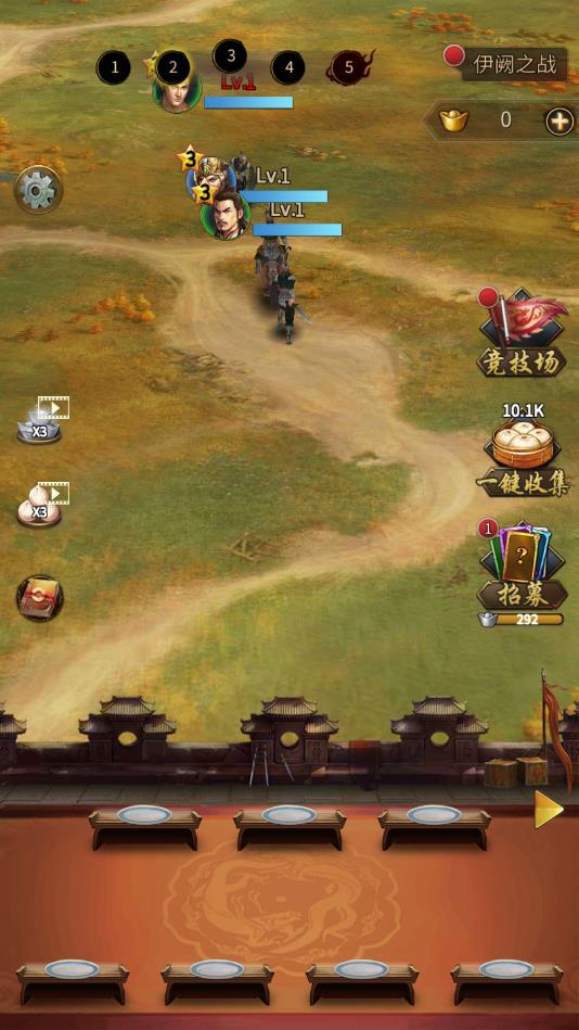 非常有趣的放置战斗玩法,不断进行更多资源的收集,才能够进行更多名将的招募,名将是能够升级的,不同关卡可以上阵不一样数量的英雄。