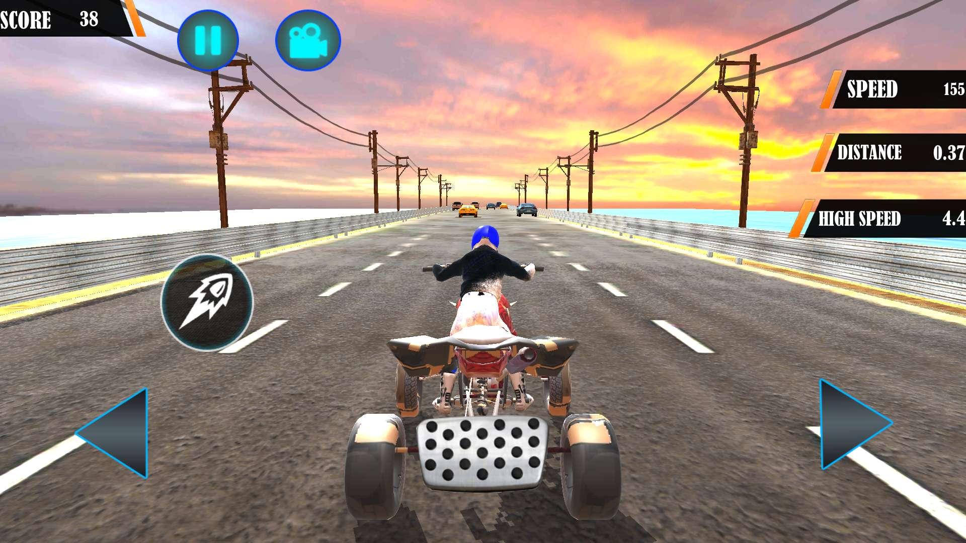 3、融入了射击对战的游戏模式,不仅仅是竞速了,可实现极致的四轮摩托车驾驶。