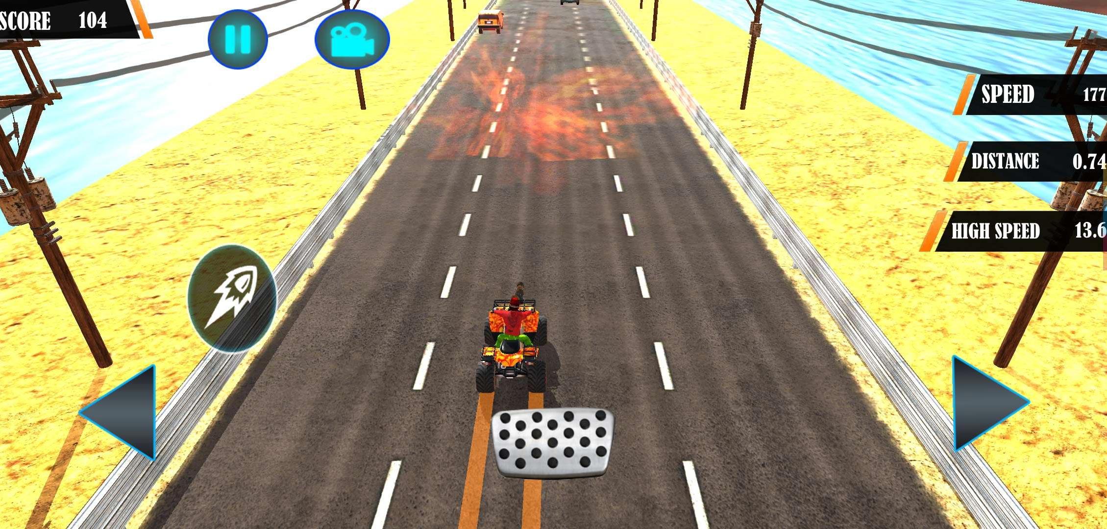 四轮摩托车射击2020是一款全新玩法的赛车游戏,游戏修改无限金币,进入游戏即可获取。这款游戏的玩法很简单,玩家在游戏中需要驾驶车辆在马路上穿行,一路上需要小心的绕过马路上的车辆,还能开枪进行射击,一旦撞上其他车辆游戏就会结束。整个游戏过程刺激有趣,赶紧下载来马路上尽情驰骋吧。