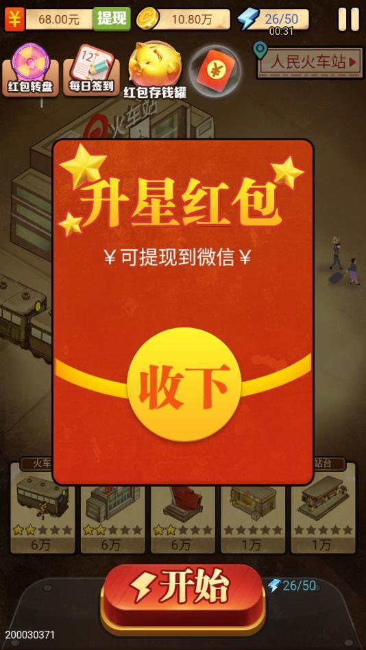 界面是非常清新的,点击即可进行建筑操作,多样的建筑,不断建筑需要不断的金币,完成一定的建造升星任务,就能够领取红包福利。