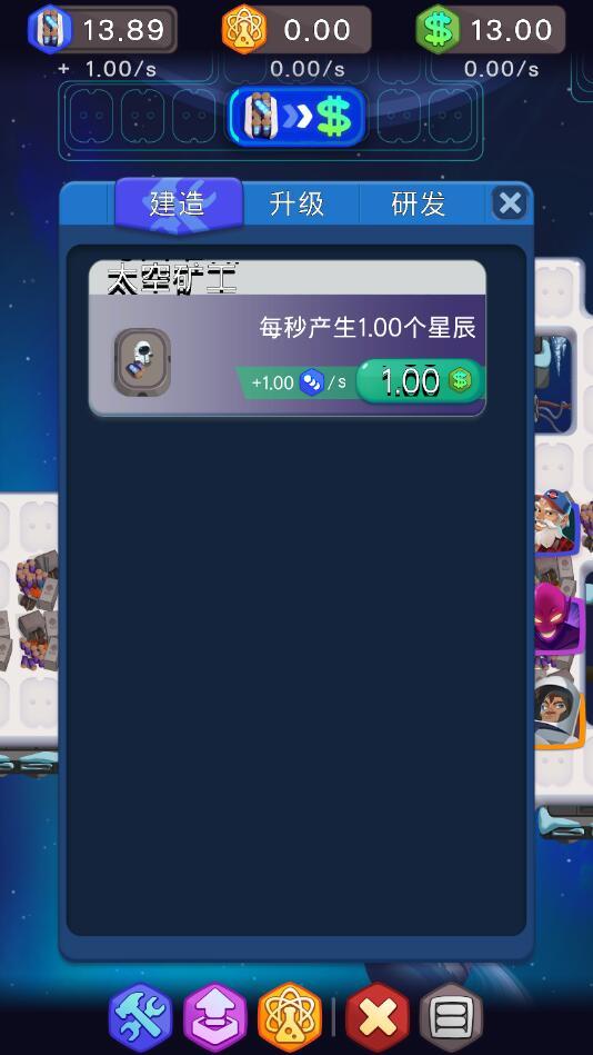 游戏中玩家可以通过升级自己的科技来提高自己的采集效率和采集范围,通过不断地将原始资源转换成能源进行出售换取利润;