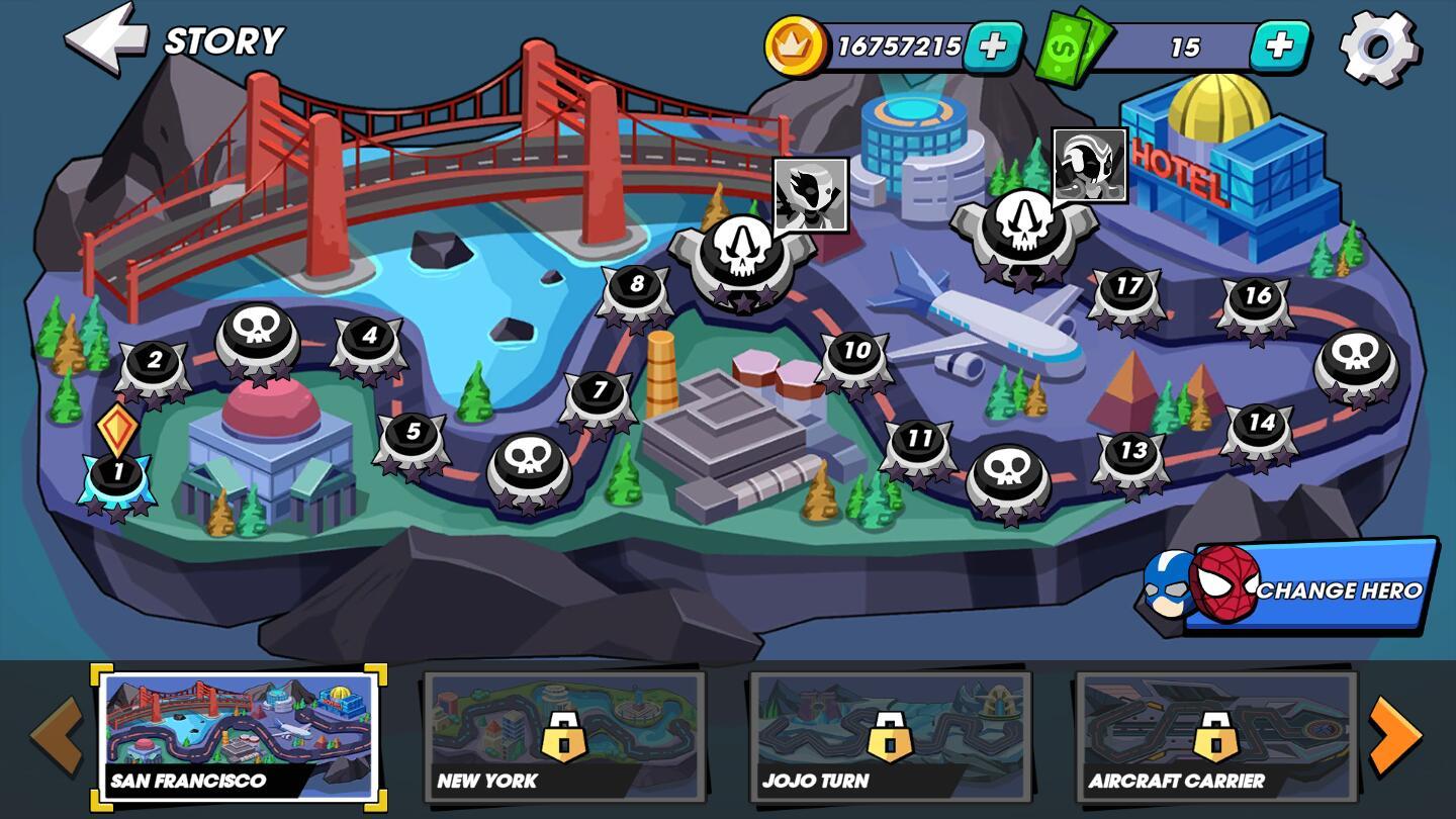 故事模式:通过引人入胜的故事情节探索世界并击败所有恶棍,成为最强大的英雄;