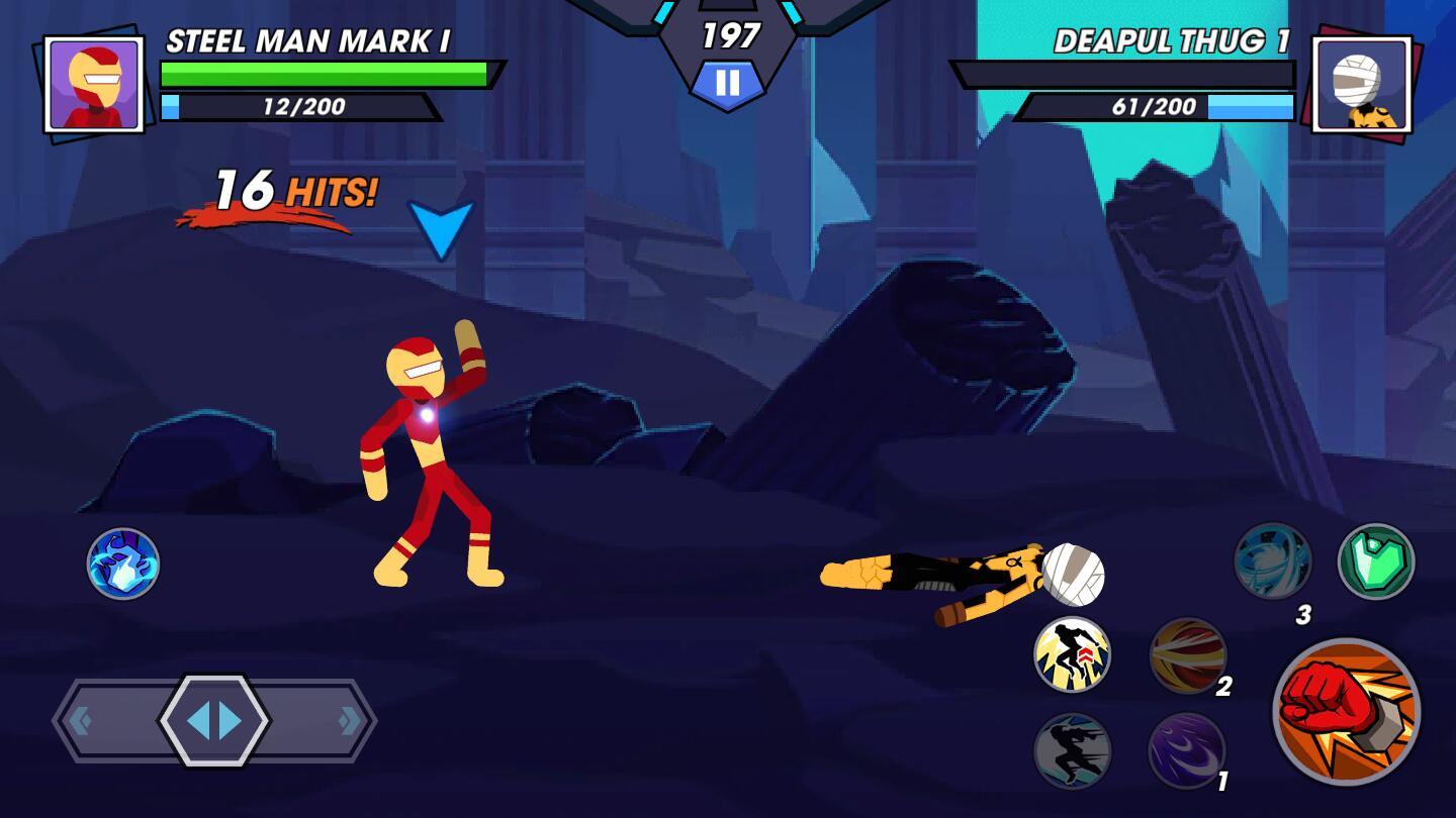 对战模式:如果您最喜欢的2个火柴人英雄在一对一的战斗中互相对抗怎么办?不管您有多爱对手,最终总会有1位获胜者;