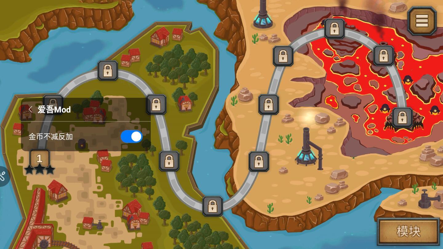 淘金热塔防这款游戏为玩家进行了汉化,而且游戏还修改为使用金币不减反加,玩家只需要开启内置的修改器就可以,这是一款有趣的塔防游戏,您需要在地图上建立塔楼,使用士兵来攻击敌人,防止己方的阵营被侵袭,游戏中您能够选择简单、困难或者地狱模式进行挑战;