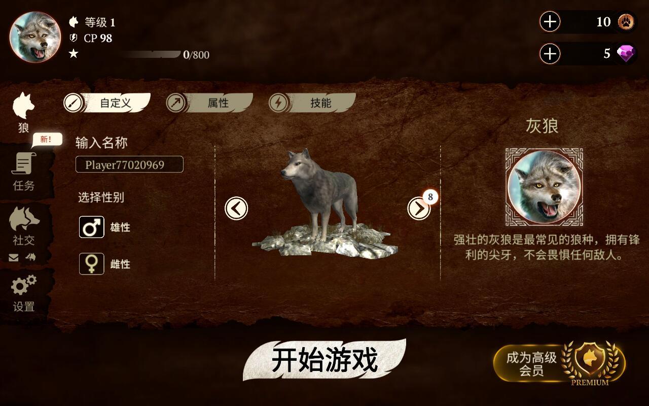 个性定制:是一个强大的灰狼?一个豺狼?或者,也许是一个神秘的黑狼?选择你最喜欢和创建独特的性格。