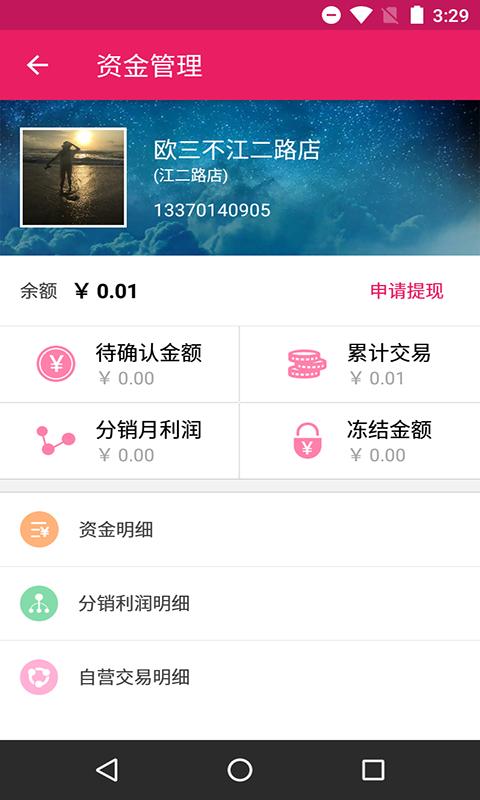 3. 账户资金管理明细:公开透明,分销自营,独立计算,时时提现